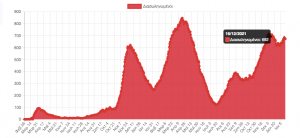 από τις 24 Αυγούστου ο αριθμός των διασωληνωμένων, εντός και εκτός ΜΕΘ ξεκινώντας από τους 326, βαίνει συνεχώς αυξανόμενος χωρίς να έχει πέσει ούτε κατά μια κλίνη.